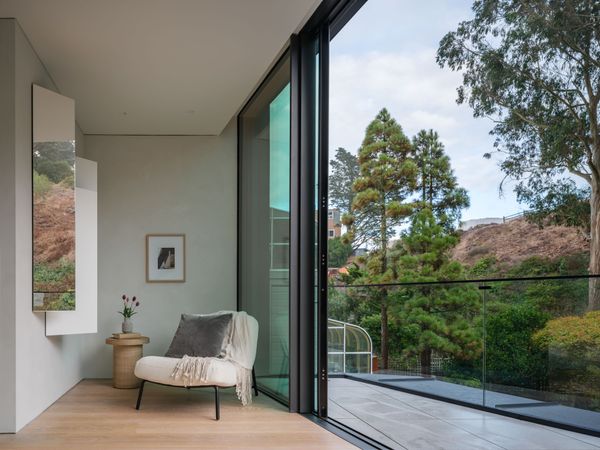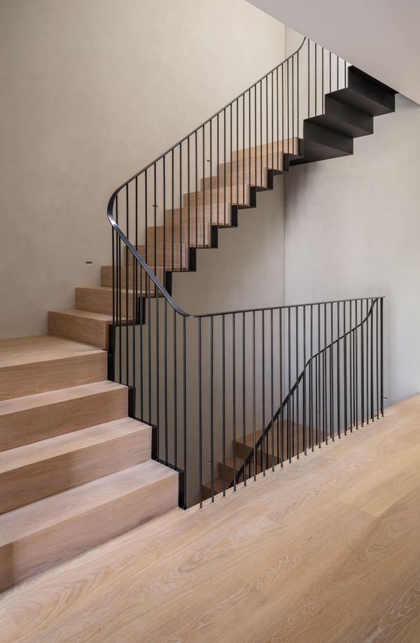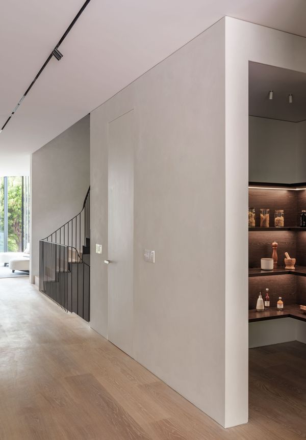 This hardware combined with custom flush-with-the wall concealed hinge accoustical doors that span from floor-to ceiling and feature true trimless jambs.